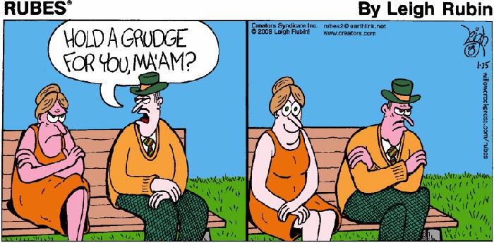 Almost as bad as money, people love to hold on to grudges. There are people in their 90’s who harbor ill will toward someone who wronged them when they were 18. They sit in a nursing home, with an oxygen tube going into their nose, their skin is pale, their teeth are gone, they can barely stay awake, but bring up the name of that person 70 years ago and they will go OFF on that person for half an hour.